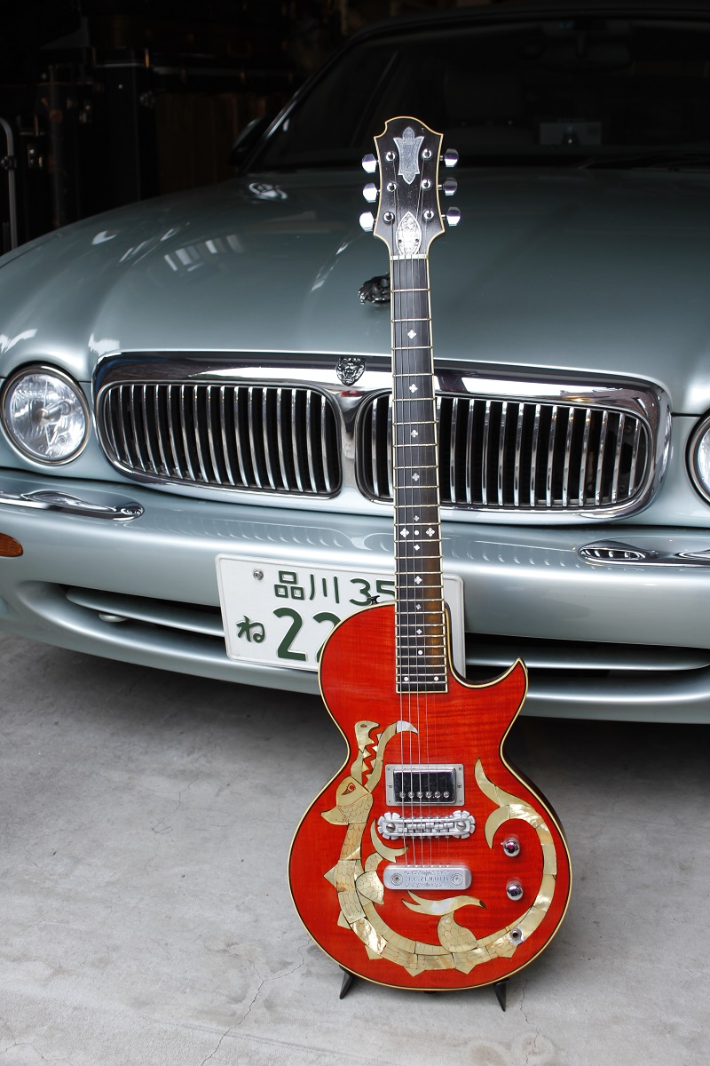 VM: さすがに、英国製ギター。後ろのジャガーが映えますね。