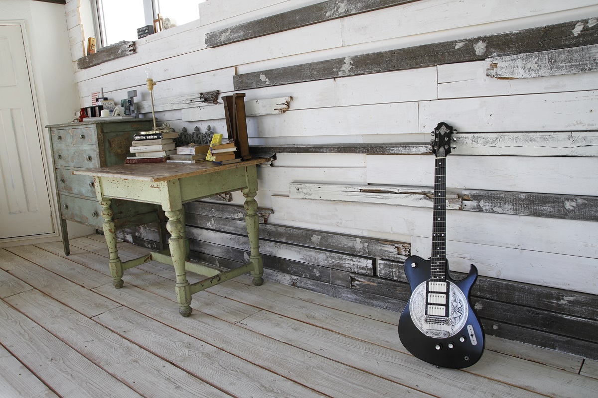 VM: 僕のZemaitisの印象は、彫金されたアルミプレートが貼られたメタル・トップや、白蝶貝が一面に貼ってあるシェル・トップです。今回のような、インレイのモデルは、キース(リチャーズ)の愛器以外では、あまり見たことがないような。