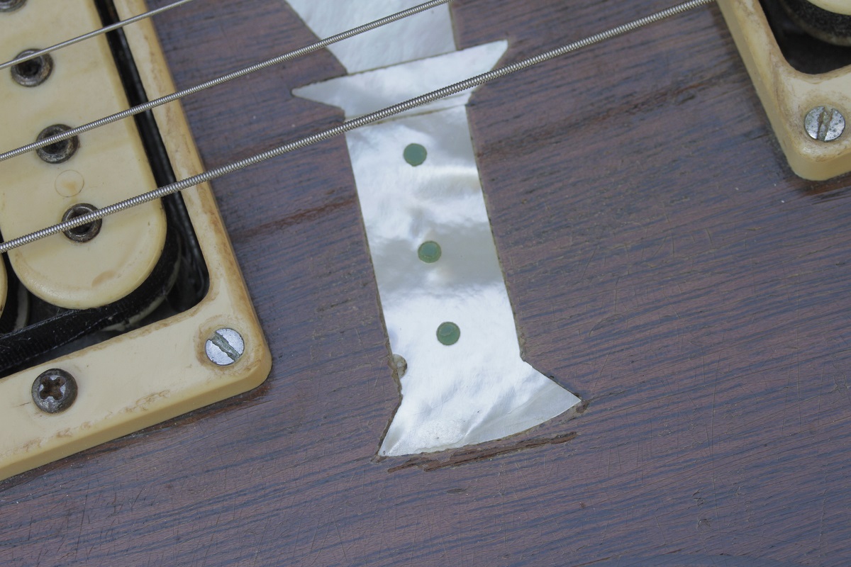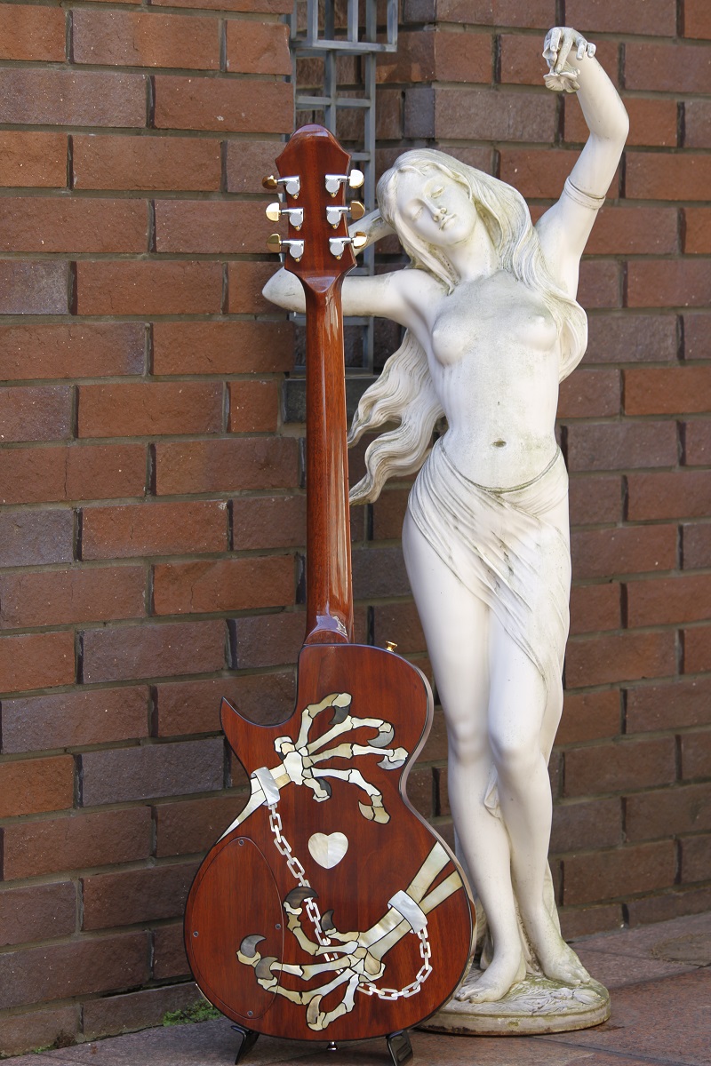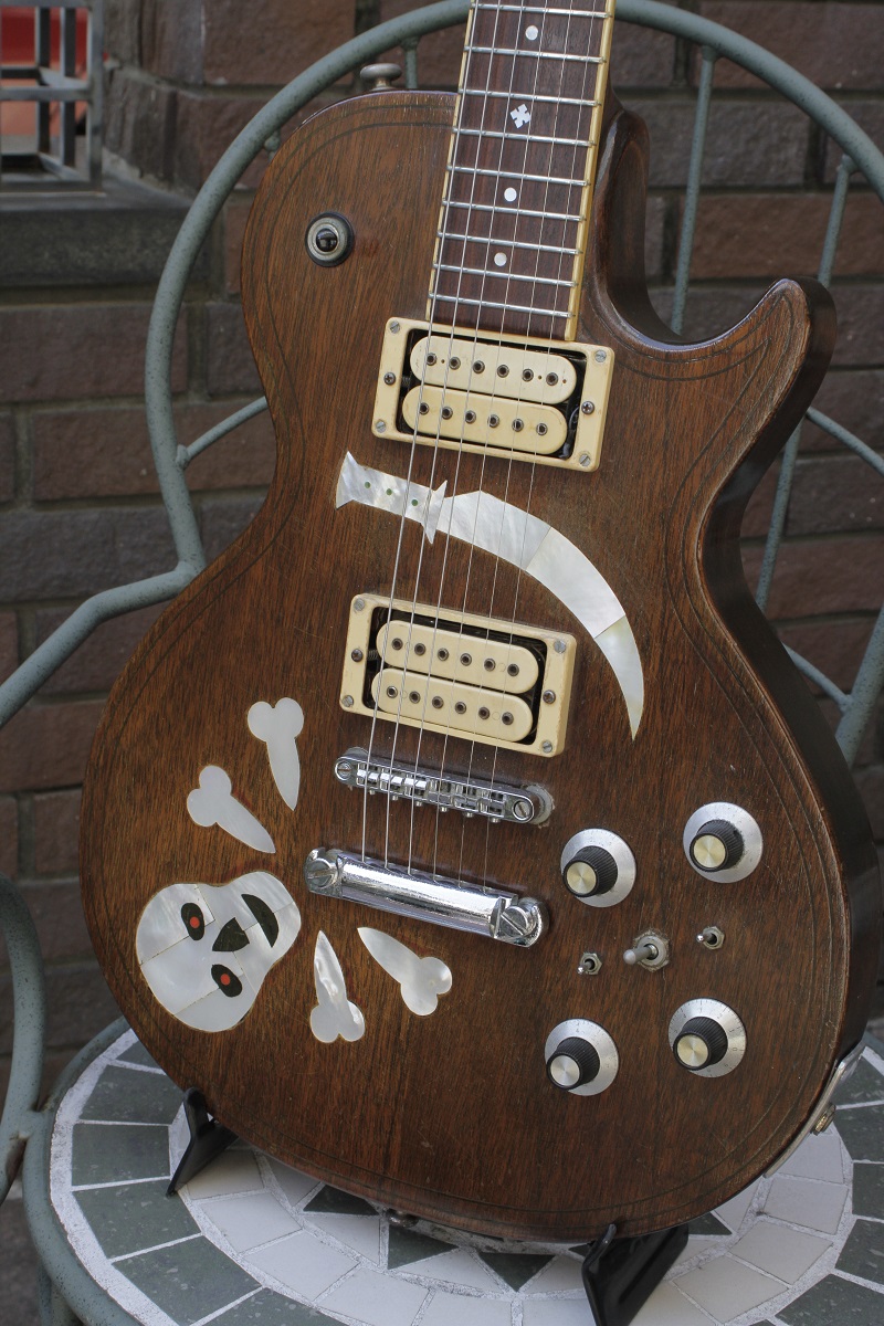 LP Shapeの髑髏インレイ・モデルは、宇崎竜童さんのファイティング80でステージに登場した1979年製のカスタム・オーダー品です。